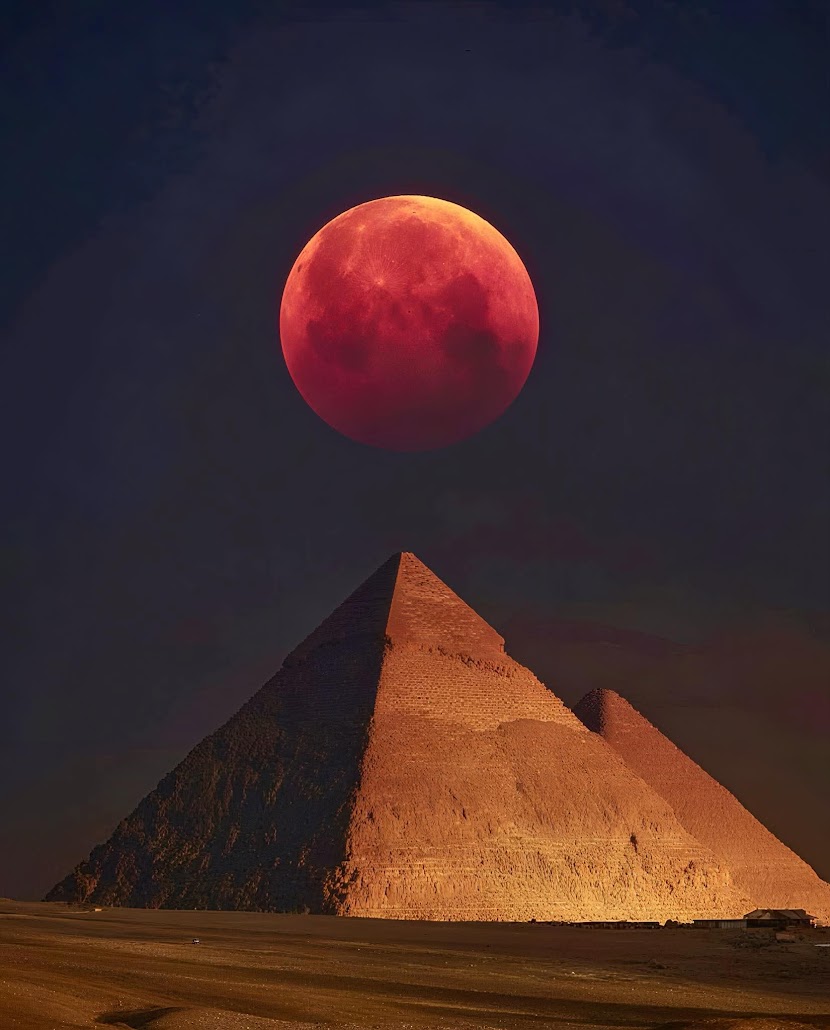 10- Blood moon over the Pyramids in Cairo